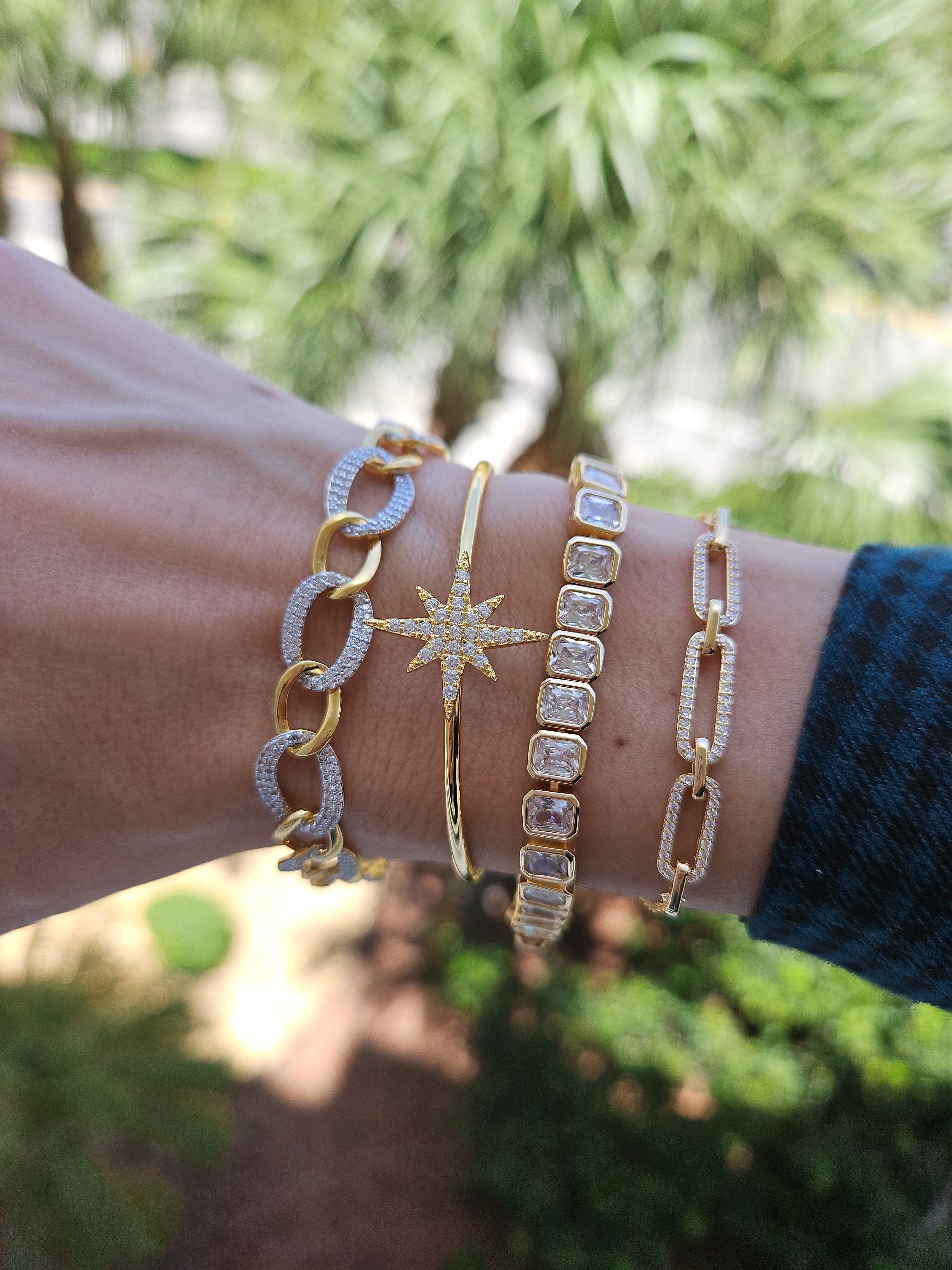 The Bracelet Di Mer Link brings a refined twist to everyday jewelry. Featuring elongated pavé links at its center and a delicate adjustable chain, this piece balances minimalism with subtle sparkle. Crafted from premium brass and plated in 18k gold, it’s designed to shine softly with every movement. Perfect alone or layered, it’s your new essential for effortless sophistication.