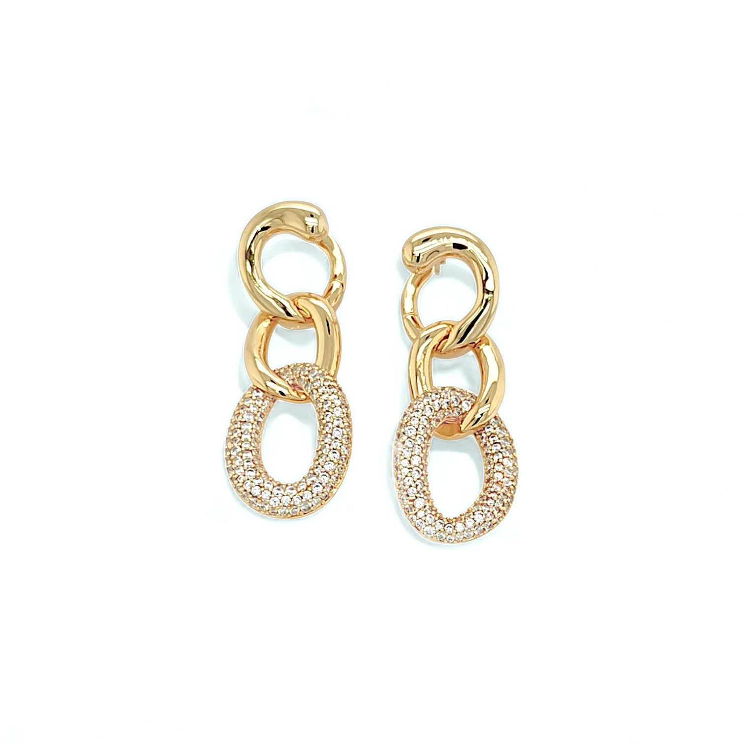 The Links Long EA earrings blend chunky chain links with a bold oval drop, fully encrusted in pavé zirconia for a high-shine finish. With their striking silhouette and double texture, they’re the perfect pair to elevate your evening outfits or add edge to everyday looks.