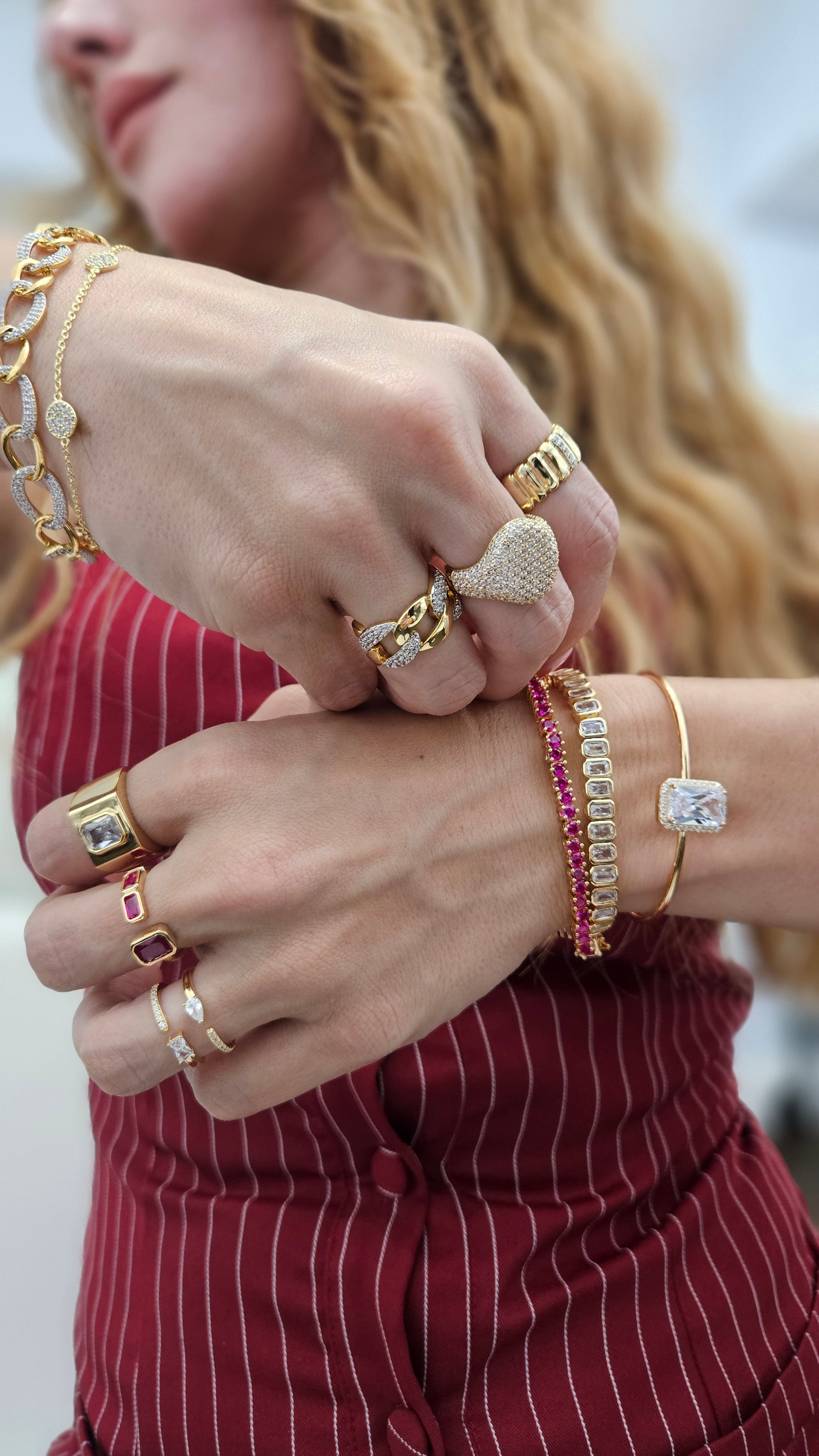 Make a dazzling statement with the Pavee Princess Ring. Designed with a bold, sculptural silhouette, this piece is completely encrusted with cubic zirconia stones for a high-impact sparkle. Whether worn solo or stacked, it brings instant elegance to any outfit.