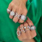 Elevate your style with the bold and glamorous Ring Flair CZ. Its open front design and encrusted cubic zirconia details add brilliance and personality to any look. A standout piece made to catch light—and attention.