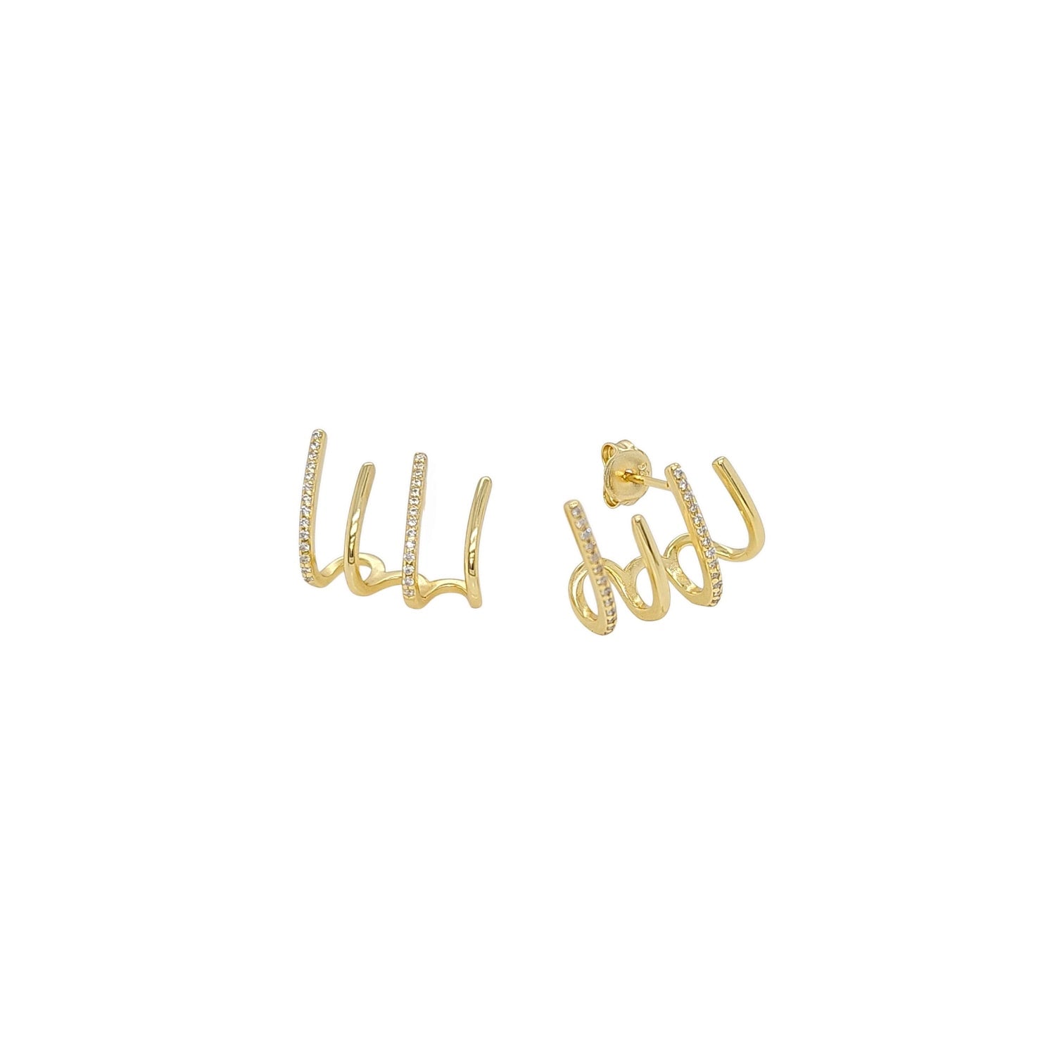The EAR 4 Plain Lines Stud from our STUDS Collection features a clean, linear design composed of four sleek bars that create a subtle yet bold statement. Crafted from 925 sterling silver and finished in 18k gold plating, it’s a modern piece perfect for everyday wear or pairing with layered ear looks.