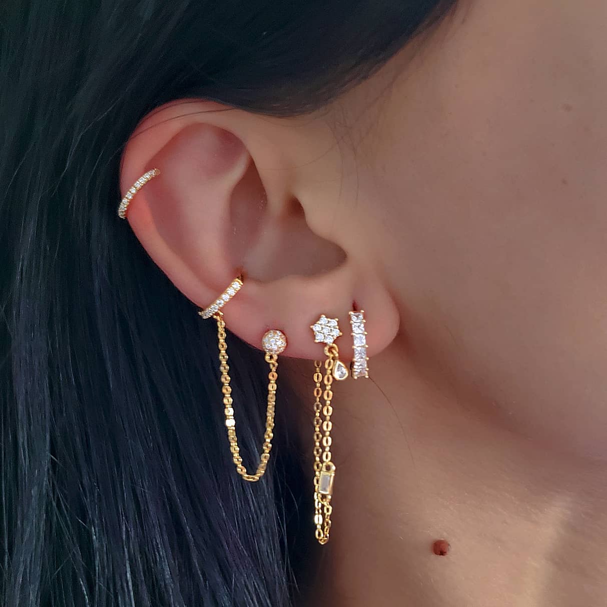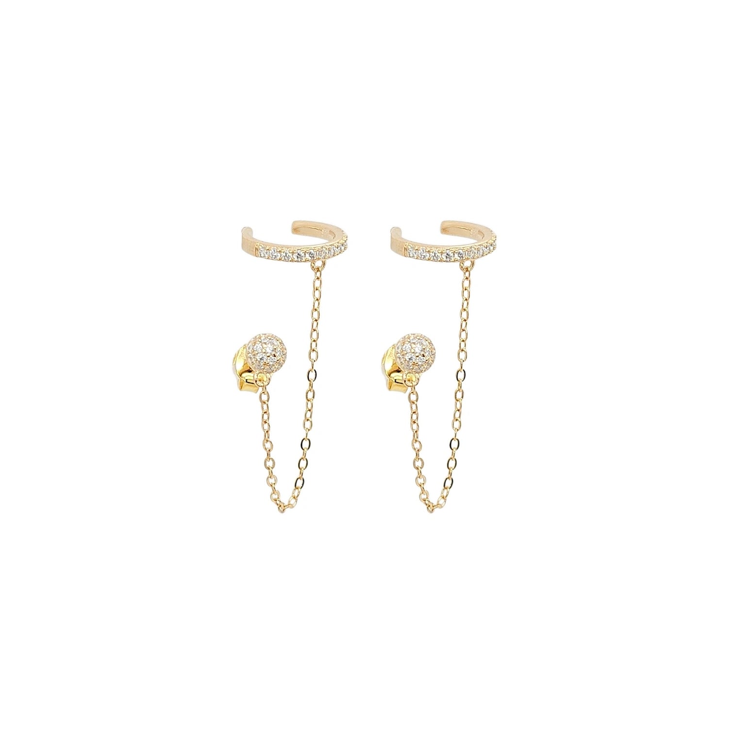 Bold yet refined, the Earring Amore features a unique dual-chain design that connects a dazzling pavé ball stud with an upper cuff encrusted with CZ stones. A romantic, modern take on drop earrings, this piece adds dimension and sparkle with every move. Perfect for evening looks or a statement day style.