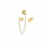 This delicate earring set combines minimalist heart studs with a sleek cuff connected by a fine chain. The dual design adds modern charm and a playful edge to your everyday look. Lightweight yet eye-catching, it’s perfect for stacking or wearing solo as a statement piece.