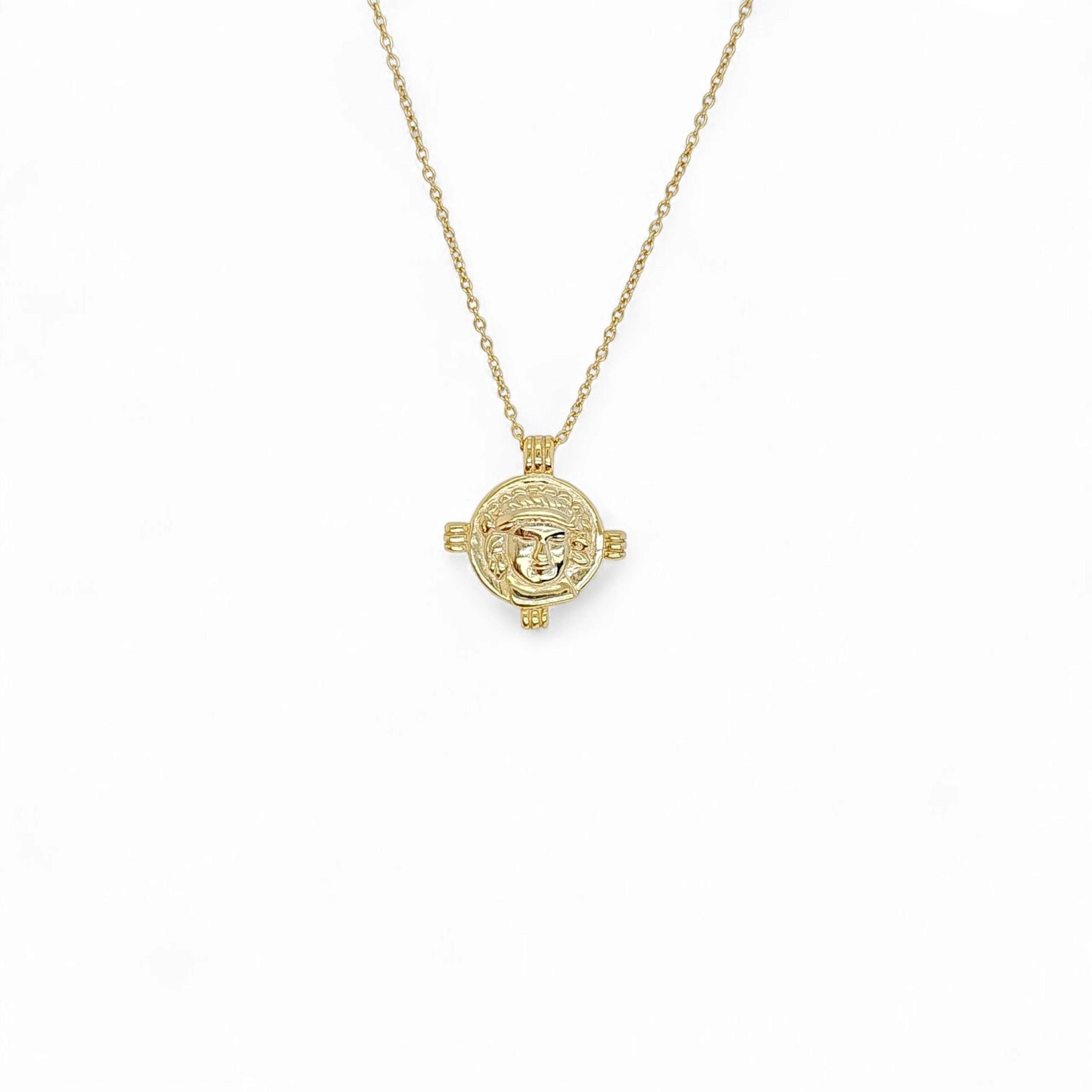 The Greek Coin Necklace 2 from our Chain with Pendant Collection features a coin-style pendant inspired by ancient Greek artistry. Made from 925 sterling silver and finished in 18k gold plating, this piece blends cultural richness with refined craftsmanship—ideal for adding character to both casual and formal looks.