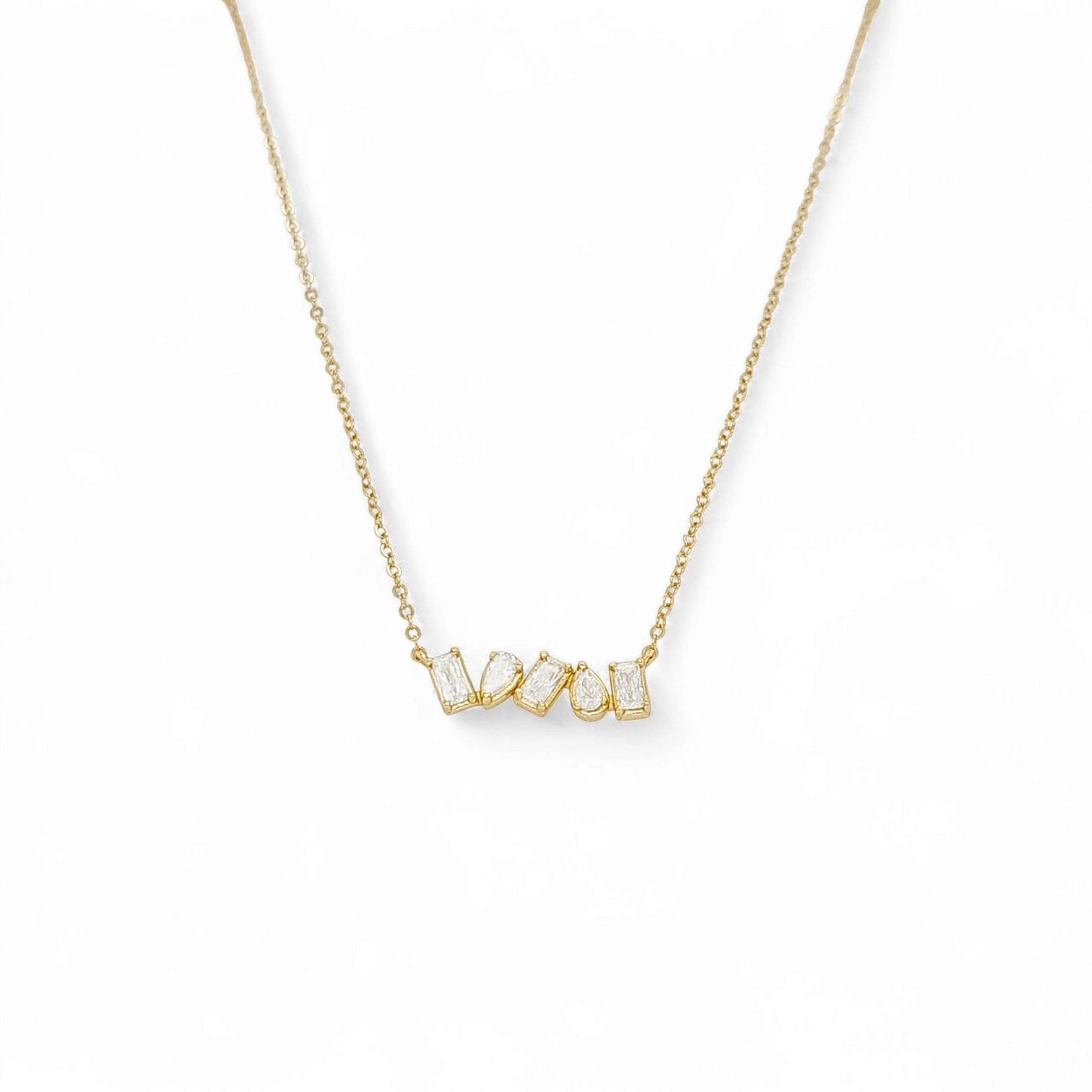 The Multi Shape Bar Necklace from our SHAPES Collection features a horizontal bar pendant adorned with a mix of subtle shapes for a modern, artistic touch. Crafted from 925 sterling silver and finished in 18k gold plating, it’s a versatile piece that brings balance and visual interest to any look.