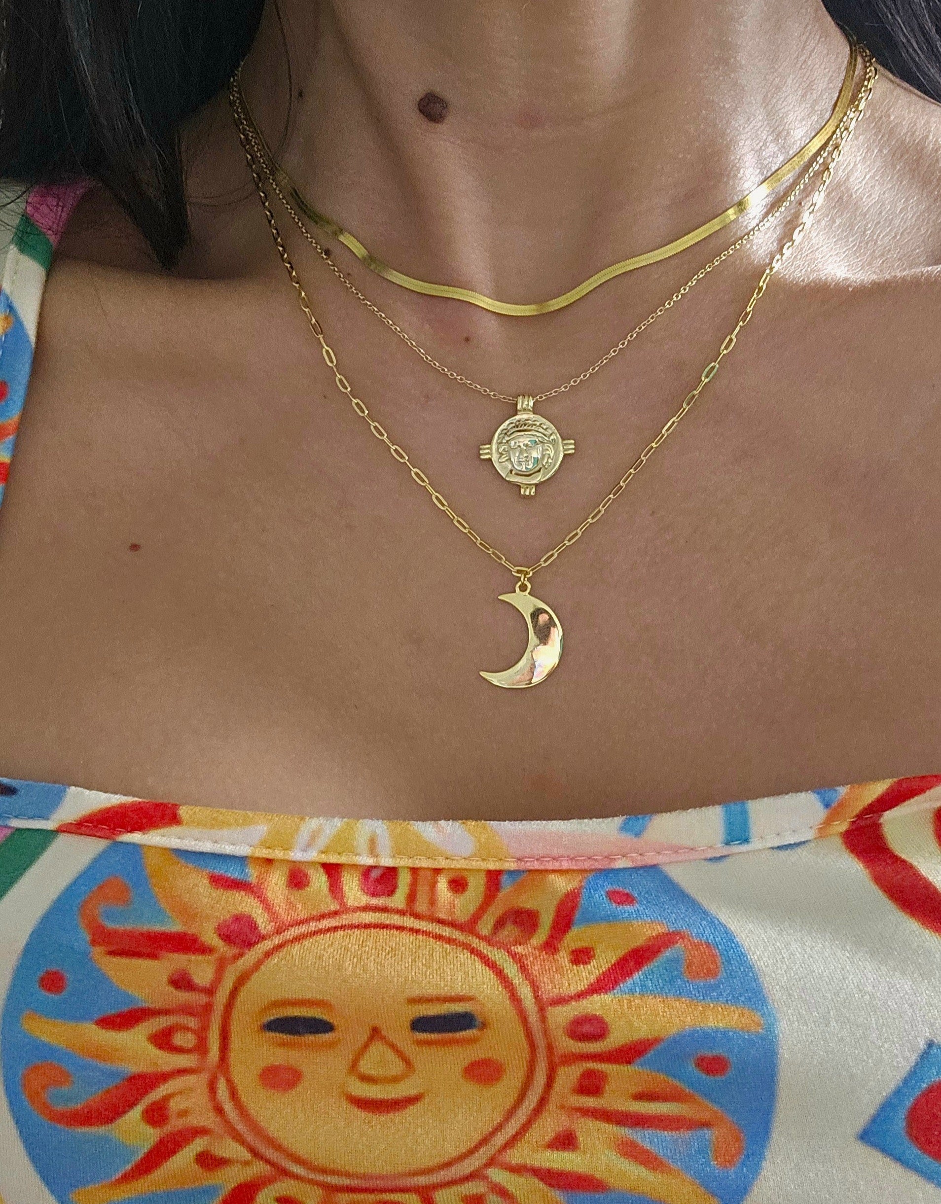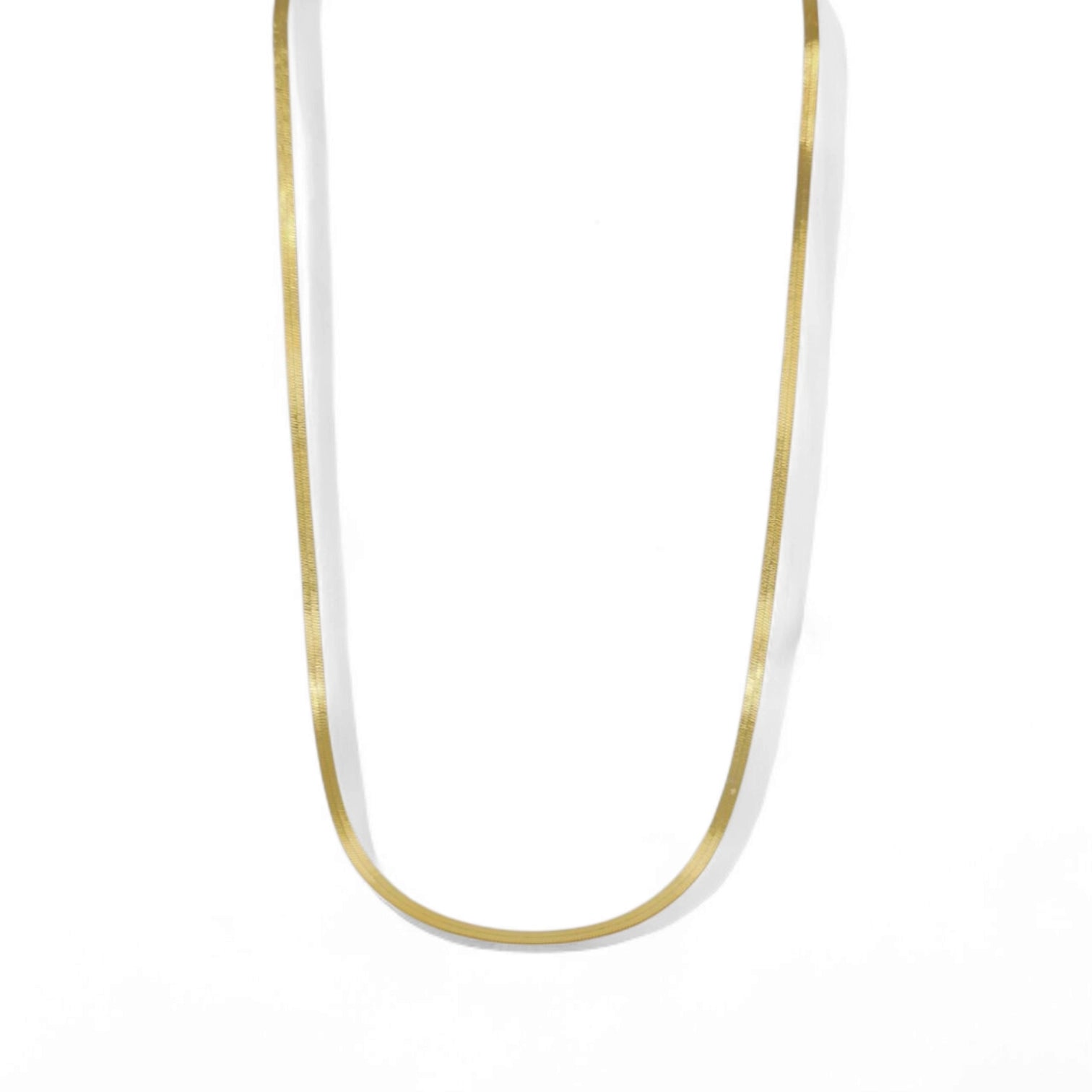 The Thin Snake Necklace from our SHAPES Collection features a smooth, flexible design that lies flat against the skin, offering a sophisticated and modern finish. Crafted from 925 sterling silver and plated in 18k gold, it’s the perfect base layer for any look—refined on its own or styled with your favorite pendants.