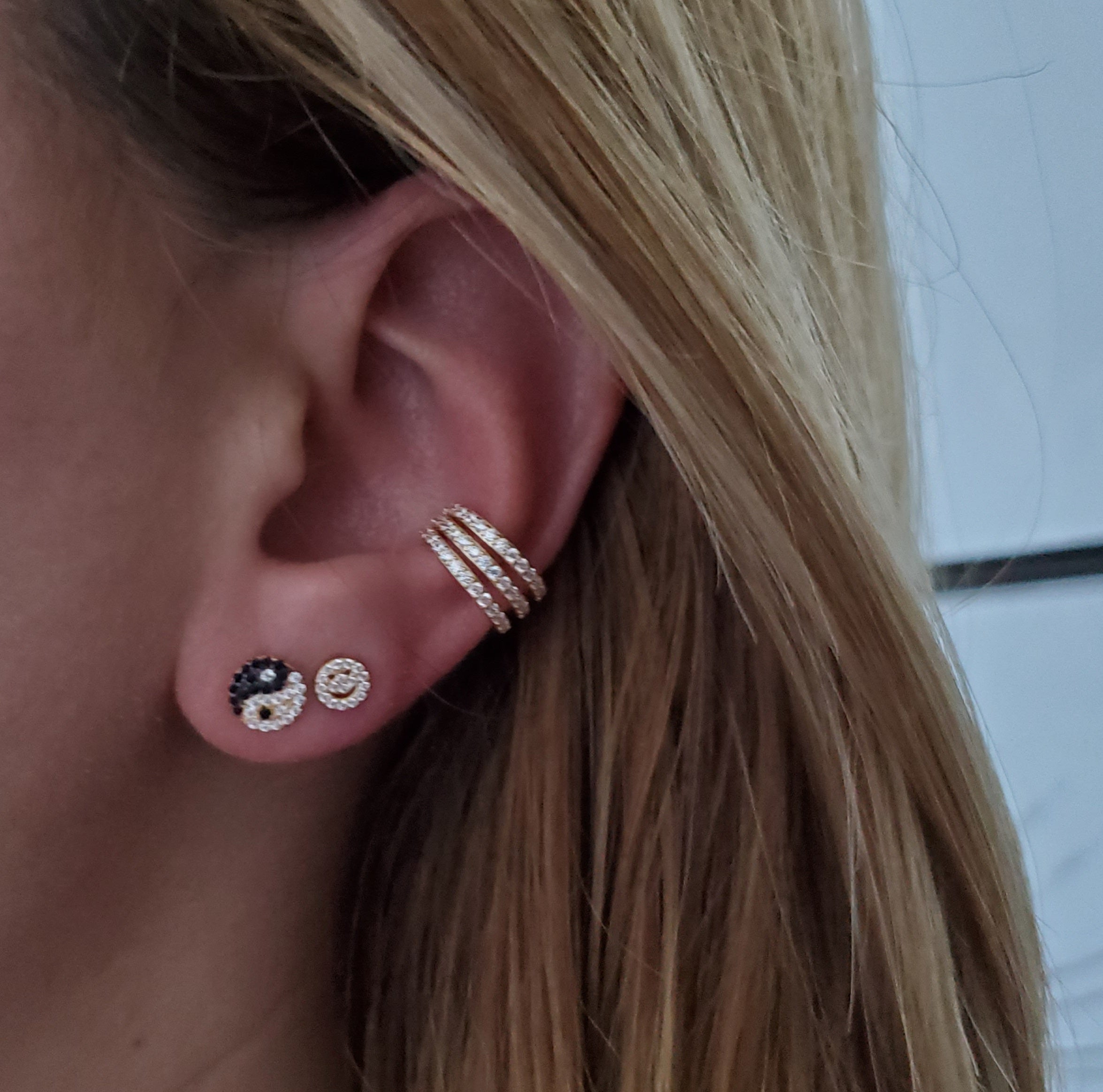 The Yingyang CZ Stud from our STUDS Collection features the iconic yin-yang symbol, accented with 5A cubic zirconia stones for a subtle sparkle. Crafted from 925 sterling silver and finished in 18k gold plating, these delicate studs bring a touch of calm energy and refined elegance to any look.