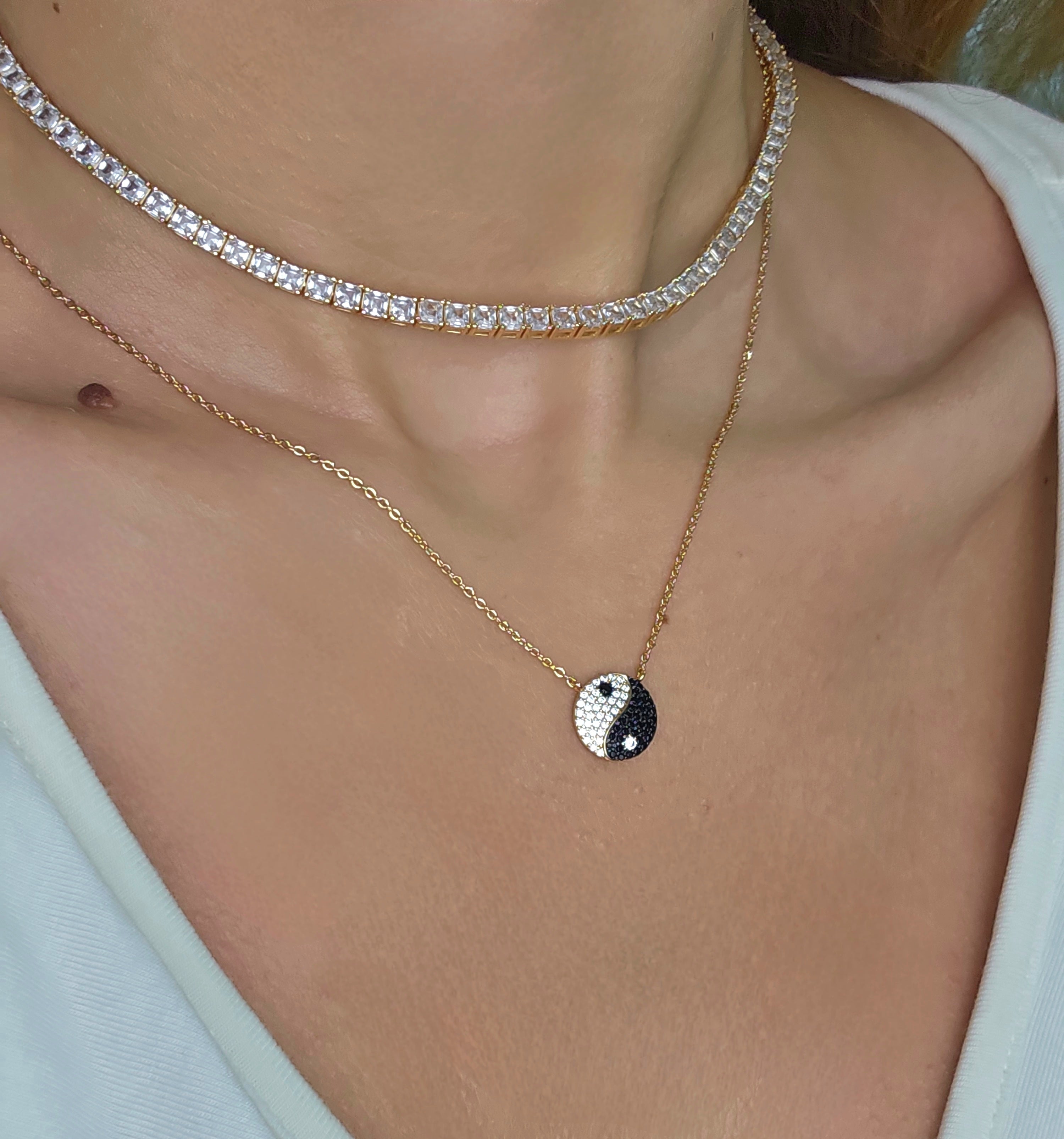 The Ying Yang Necklace from our SHAPES Collection features a minimalist pendant inspired by the balance of opposites. Crafted from 925 sterling silver and finished in 18k gold plating, it’s a meaningful piece that blends modern design with timeless symbolism—ideal for everyday wear or layered expression.