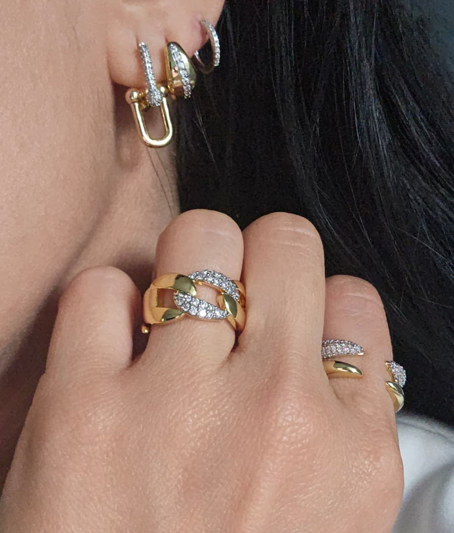 Ring double taurus 2 tones | 18k gold plated | Italian brass | cubic zirconia